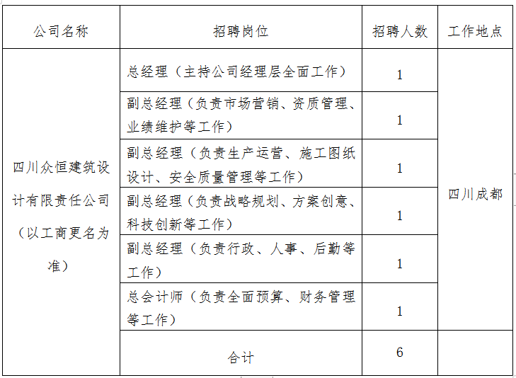 1.四川众恒建筑设计有限责任公司(以工商更名为准)公开招聘职业经理人岗位任职条件